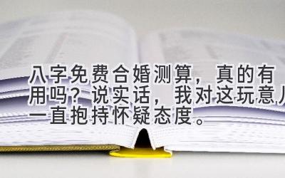 其实,我一直觉得, 八字合婚 这种东西,信则有,不信则无。与其把自己的感情寄托在几个干巴巴的字和公式上,还不如多花点时间了解对方的为人、三观,看看彼此是不是真的合适。