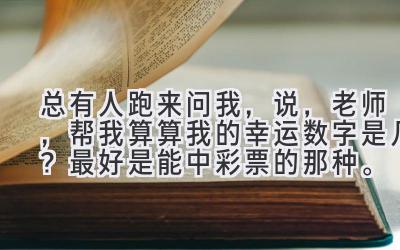 八字测算幸运数字 ,这事儿有,但绝对不是你们想的那样,一翻书,啪,你的数字是8,从此你就抱着8过一辈子。要是这么简单,那懂命理的人岂不个个都是亿万富翁了?