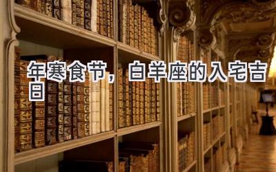 2020年寒食节,白羊座的入宅吉日,是一个充满希望和机遇的时刻。选择在这一天入宅,将能够开启一段充满活力和创造力的全新生活。让我们跟随星座的指引,迎接好运,开启人生新的篇章!