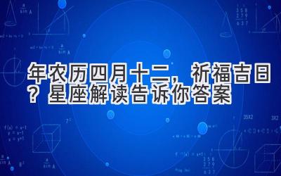 2020年农历四月十二,公历5月4日,星期一,对应的是金牛座。 想要了解这天是否适合祈福,我们不妨从金牛座的星座特性入手,来寻找答案。