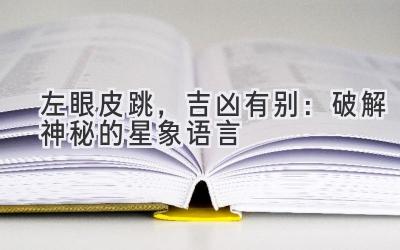 左眼皮跳动,看似微不足道,却蕴含着神秘的星象语言。通过解读星象和时间,我们可以从中获取人生的启示,并运用星座元素进行起名,为人生道路增添助力。但请记住,命运掌握在自己手中,左眼皮跳动只是一个参考,最终的结果取决于你的努力和选择。