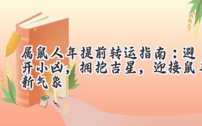 在现实生活中,本命年的说法一直令人谈之色变,谁都不愿在这一年遭遇厄运。甚至有传言称,本命年前一年也会受到霉运的影响,让人不禁担忧。那么,属鼠人在2019年,也就是本命年前一年,是否真的会霉运缠身呢?又该如何提前做好准备,平安顺利地度过这一年?