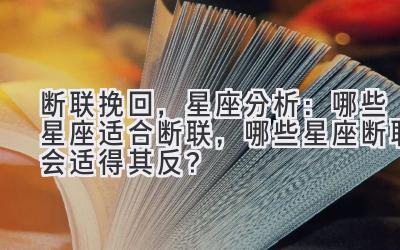 今天,我们将以星座的角度,探讨断联挽回的奥秘。