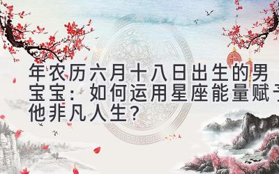 名字是跟随宝宝一生的文字符号,承载着父母的期望和祝福,也蕴藏着深厚的宇宙能量。2019年农历六月十八日出生的男宝宝,究竟该如何起名,才能让他的人生充满光明和希望呢?