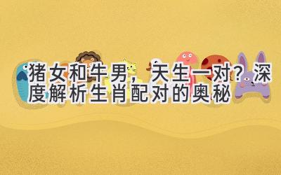 都说姻缘天注定,可这“天注定”到底是怎么个注定法?是看星座?是看生肖?还是看面相、八字?今天,咱们就来聊聊一个让很多人好奇的问题:属猪的女生和属牛的男生,到底合不合?