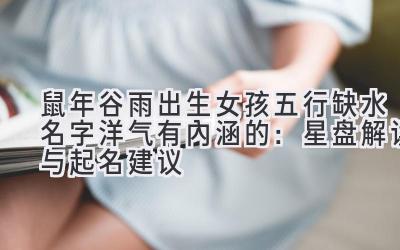 2020鼠年谷雨出生女孩的星盘蕴藏着独特的能量,她们的命运注定充满机遇和挑战。在起名时,应结合女孩的星盘解读和五行缺水的信息,选择能够平衡阴阳、补充五行能量的名字,以帮助她们在人生道路上更加顺利,实现自己的梦想和目标。
