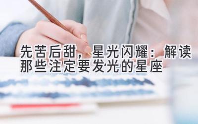 正所谓人各有命,并非所有星座都天生拥有锦衣玉食的生活。许多星座在经历过人生的低谷和磨砺后,最终会凭借自身努力和天赋,收获丰厚的回报,成就辉煌的人生。今天,让我们一起探秘那些先苦后甜,最终星光闪耀的星座,解读他们背后的星盘秘密,以及如何利用星座的力量,实现命运的逆袭。