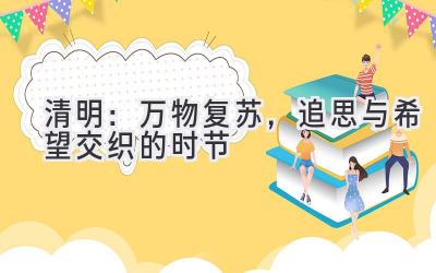 清明时节,万物复苏,是人们祭祖缅怀、亲近自然、展望未来的好时机。在这一特殊的节气,让我们怀着感恩之心,缅怀先祖,感受春天带来的生机与希望,并为未来的人生之路充满期待。
