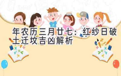 2020年农历三月廿七,公历2020年4月19日,星期日,白羊座。这一天是传统的“红纱日”,也称为“红砂日”,古人认为这一天不宜破土迁坟,这是为什么呢?让我们一起深入探究其中的奥秘。