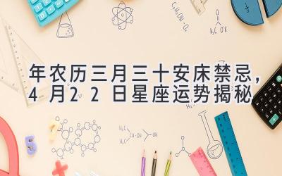 安床乃人生大事,择吉日更是重中之重。2020年农历三月三十,公历4月22日,恰逢金牛座的守护。这一天是否适合安床?金牛座的运势又将如何?且让我们一同揭开神秘面纱,探索星座与命运的奇妙交织。