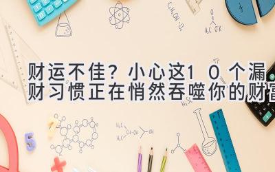如今,每个人都渴望拥有财富,希望通过辛勤的努力换取更好的生活。然而,你是否也曾有过这样的困惑:明明辛苦工作了一年,却始终无法攒下什么钱?或许,问题并非出在收入上,而是你可能正在无意中犯着一些漏财的习惯,导致财富悄悄地从你手中溜走。今天,我们将深入探讨这些容易被忽视的漏财习惯,帮助你守住财富,开启财运之路。