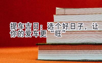 新车到手,喜悦之情溢于言表,但别忘了,提车也讲究个“吉利”!选个好日子,不仅图个好彩头,还能让你的爱车更“旺”,一路顺风顺水。
