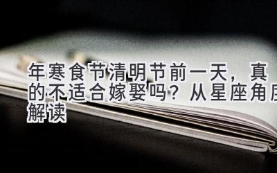 2020年寒食节-清明节前一天并非是结婚的“大凶之日”, 重要的是选择一个双方都认可、并且能够承载美好祝福的日子,去开启属于你们的幸福旅程。无论是选择传统黄历,还是结合现代星座学、命理学进行分析,都应该以理性、包容的态度去面对,最终选择一个最适合自己的结婚日期。