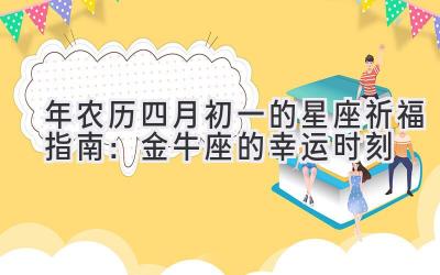 2020年农历四月初一是公历2020年4月23日,星期四,正好是金牛座的守护日期。金牛座是十二星座中踏实稳重的代表,他们拥有强烈的安全感和务实精神,喜欢追求稳定和舒适的生活。对于金牛座而言,2020年农历四月初一的到来,意味着机遇与挑战并存,而祈福则能够为他们带来更多好运和指引。