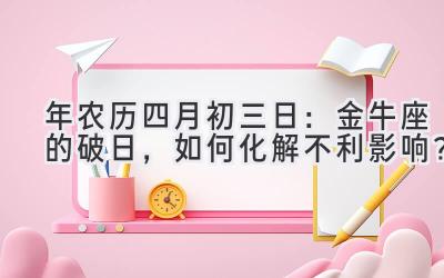 2020年农历四月初三日是金牛座的破日,需要注意避开重大决定和行动,保持平和心态,利用金牛座的优势化解不利影响。同时,也要关注星座配对和起名方面的建议,以期获得更美好的生活。