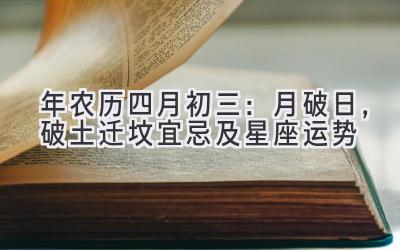 2020年农历四月初三,月破日能量较弱,不适合破土迁坟等重大事件。不同星座受到月破日的影响不同,建议根据自身星座的特点调整行动计划,避免冲动,保持冷静和理性。