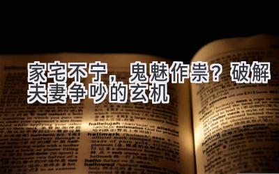 夫妻之间发生争吵,有时并非简单的个人问题,也可能受到外在因素的影响。通过了解风水学中的相关知识,并结合自身情况进行调整,可以有效地改善家庭氛围,减少夫妻之间的争吵,让家庭生活更加和谐幸福。