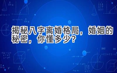 在四柱预测学中,婚姻是否美满,是大部分求测者都很关心的议题。那么,什么样的八字格局,婚姻较为不顺,且容易离婚呢?