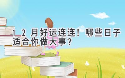 12月来了,新的一月,新的期待! 你是否已经做好准备迎接接下来的机遇和挑战? 想要在这个充满希望的月份里事事顺利,拥有好运加持? 别着急,让我们先来看看12月哪些日子是黄道吉日,帮你抓住好运的尾巴!