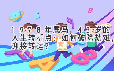 1978年出生的属马人,性格热情奔放、积极向上,天生自带一股自信和活力,他们的人生之路往往充满机遇与挑战。然而,正如人生不如意事十之八九,当他们步入2021年,迎来43岁的关键转折之年,命运的齿轮似乎也发生了微妙的转变。