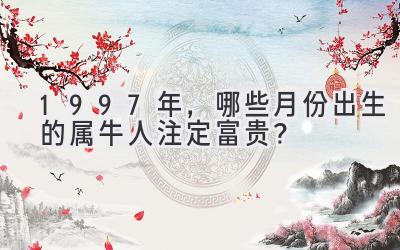 1997年,是属牛人中蕴藏着无限潜力的年份,而其中,又有几个特殊的月份,仿佛被命运之神眷顾,赋予了他们非凡的机遇与福运。三月、七月、八月和十月,这四个月出生的属牛人,注定要比其他月份出生的同龄人拥有更富贵、更顺遂的人生。